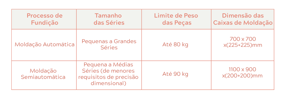 A Fábrica Visão tem duas linhas de moldação em areia verde , 1 linha automática (até 60 caixas por hora) e 1 linha semiautomática, que são alimentadas por dois Forno de indução elétrica, um da marca INDUCTOTHERM e um da marca TAYLORMADE (ambos com a capacidade de fusão de 1 tonelada por hora).